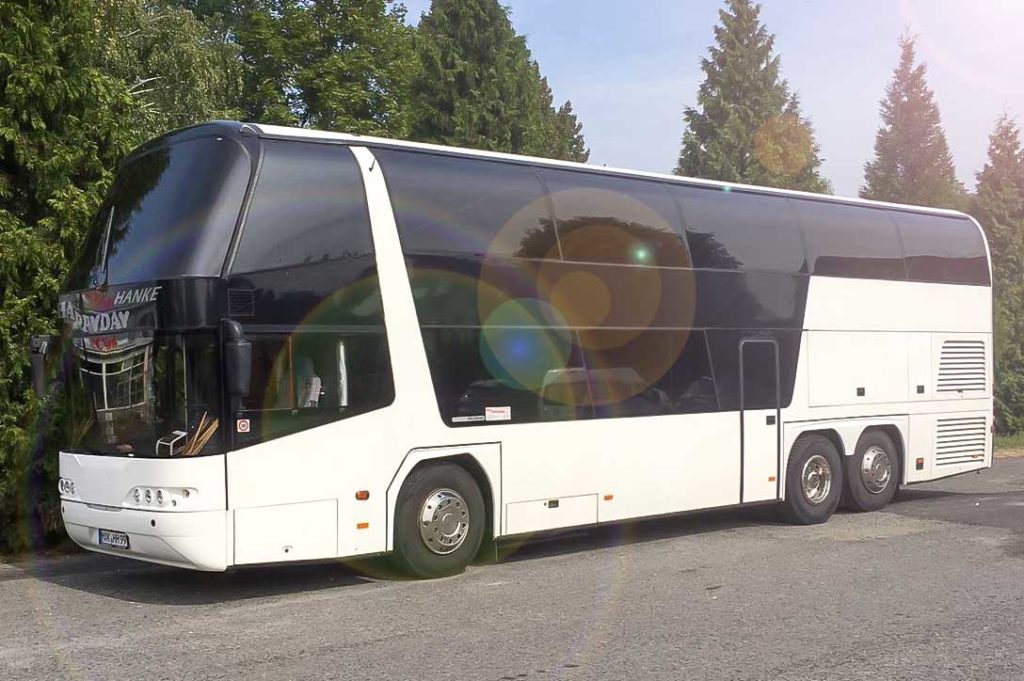 Unsere Doppeldecker für 60 bis 91 Personen bringen auch große Reisegruppen komfortabel ans Ziel. Auch bei kurzfristigen Anfragen können wir dank unseres Netzwerks und unserer Flotte flexibel angepasst, deutschlandweit auf Ihre Ansprüche reagieren und Ihnen das für Sie beste Angebot machen. Immer ganz nach Ihren Wünschen und immer so sicher und komfortabel wie möglich. Zuverlässig und pünktlich holt Sie Ihr Doppeldecker genau da ab, wo Sie es möchten. Natürlich planen wir auch die Ab- und Rückreiserouten mit mehreren Ein- und Ausstiegshalten an verschiedenen Sammelpunkten mit Ihnen zusammen. Zudem bieten wir Ihnen für Ihre Reise im Doppeldecker auch zahlreiche Extra-Services wie die Bereitstellung von Fahrtverpflegung, individuelles Fahrzug-Branding und vieles mehr an. Für Fernreiserouten kann optional ein Anhänger dazu gemietet werden.